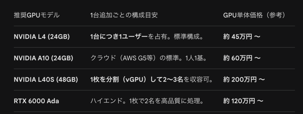 内訳:GPU(L4等)の物理増設 + RTX vWS年間サブスク